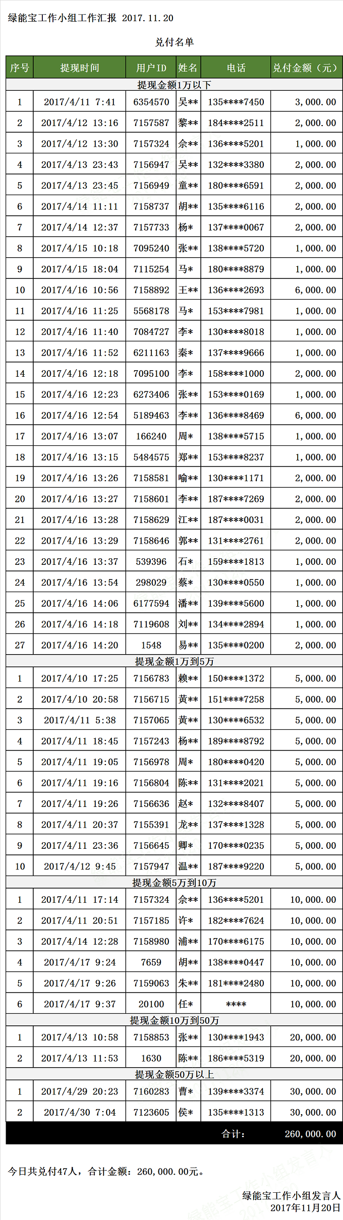 兌付名單(2017年11月20日)