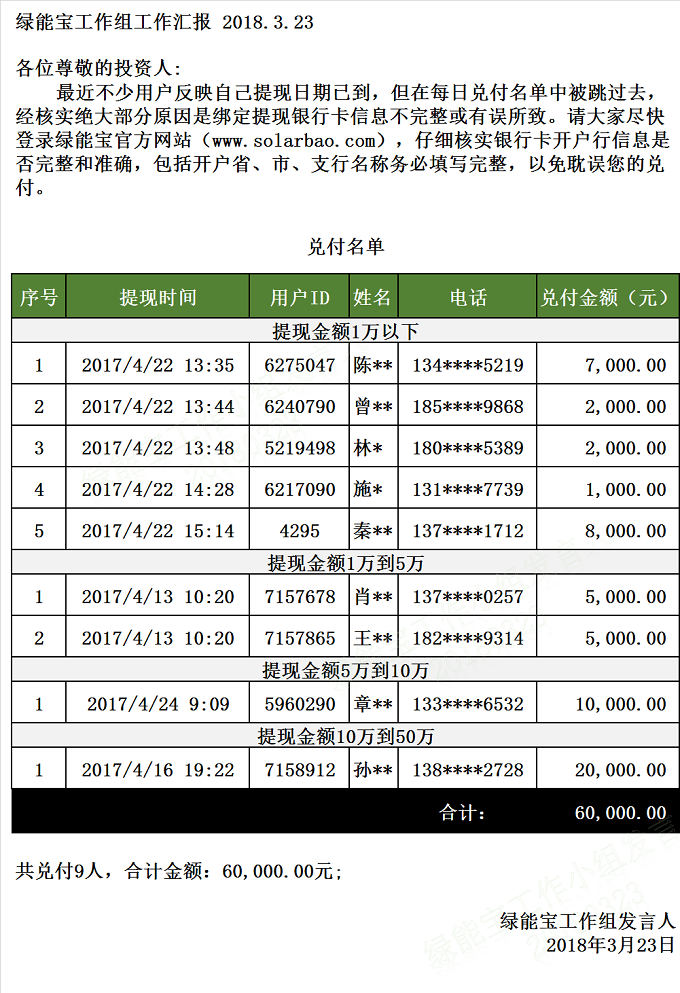 【下一條】兌付名單(2018年3月22日)