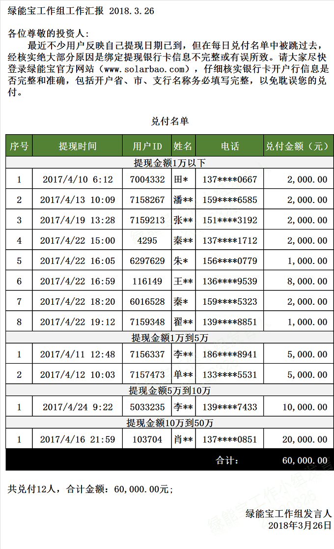 【下一條】兌付名單(2018年3月23日)
