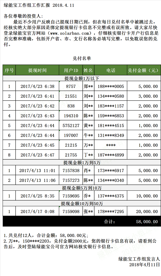 兌付名單(2018年4月11日)