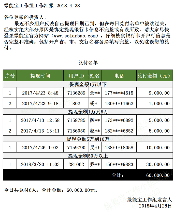 【下一條】 兌付名單(2018年4月27日)