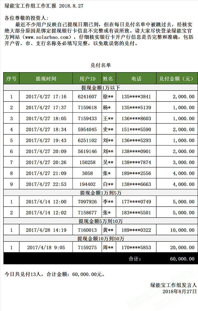 兌付名單(2018年8月27日)