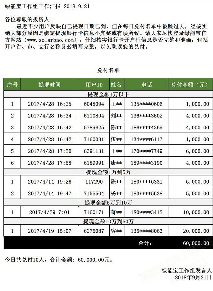 兌付名單(2018年9月21日)