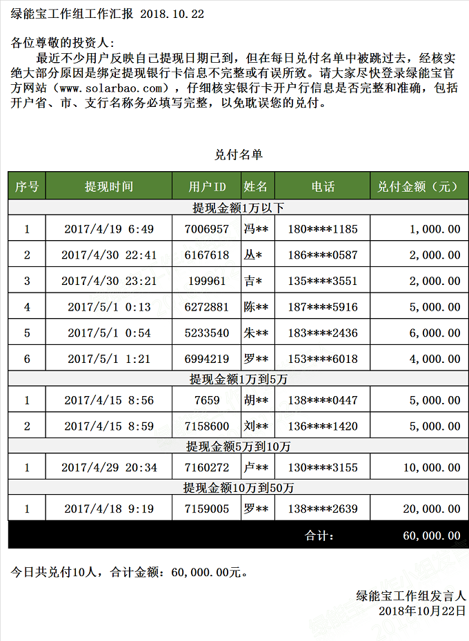【下一條】兌付名單(2018年10月19日)