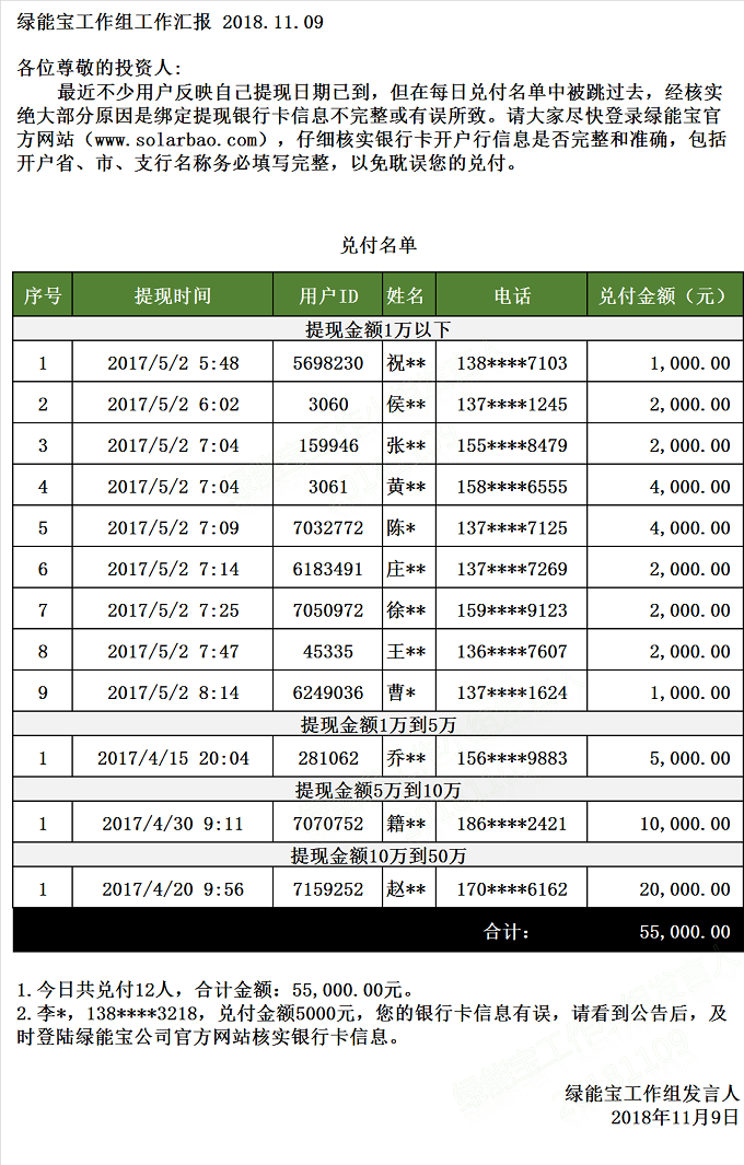 兌付名單(2018年11月9日)