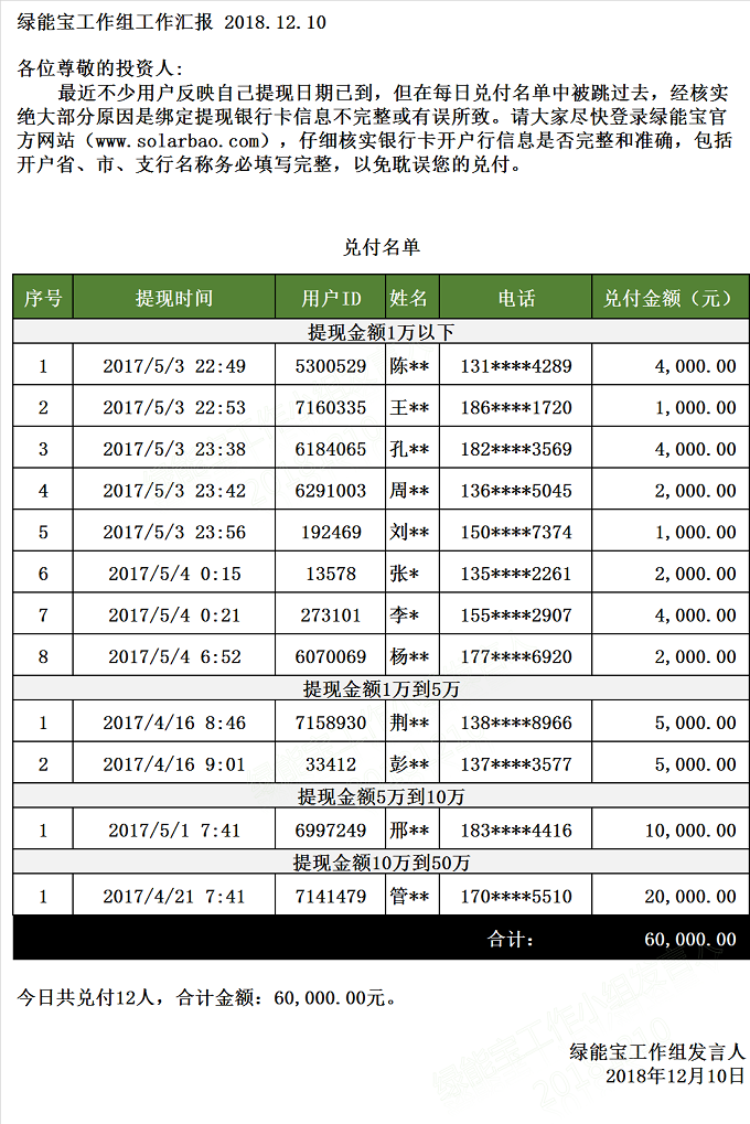兌付名單(2018年12月10日)