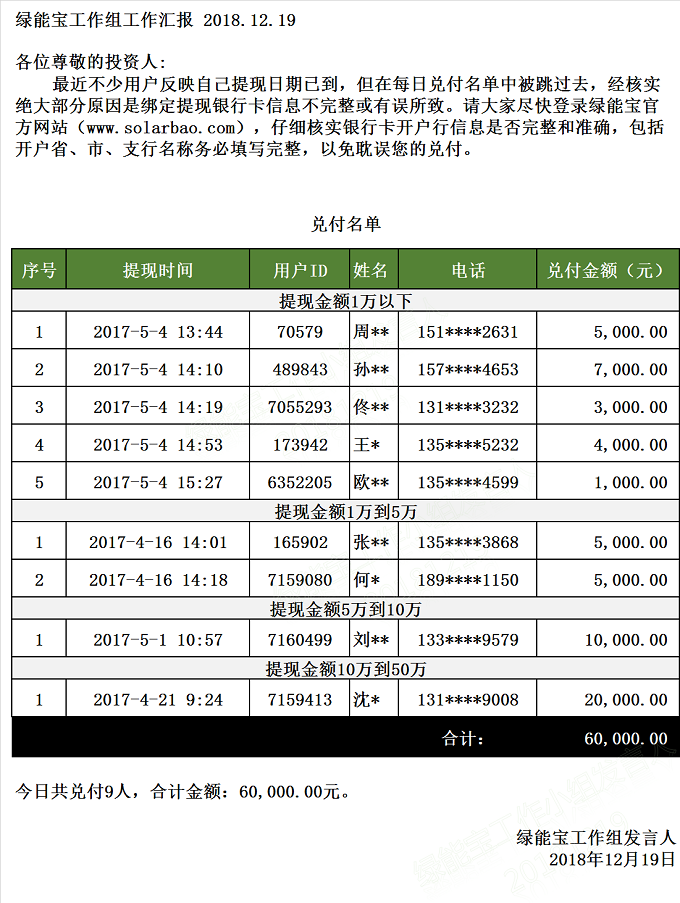 兌付名單(2018年12月19日)