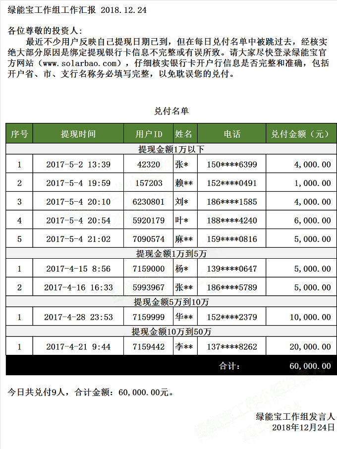 兌付名單(2018年12月24日)