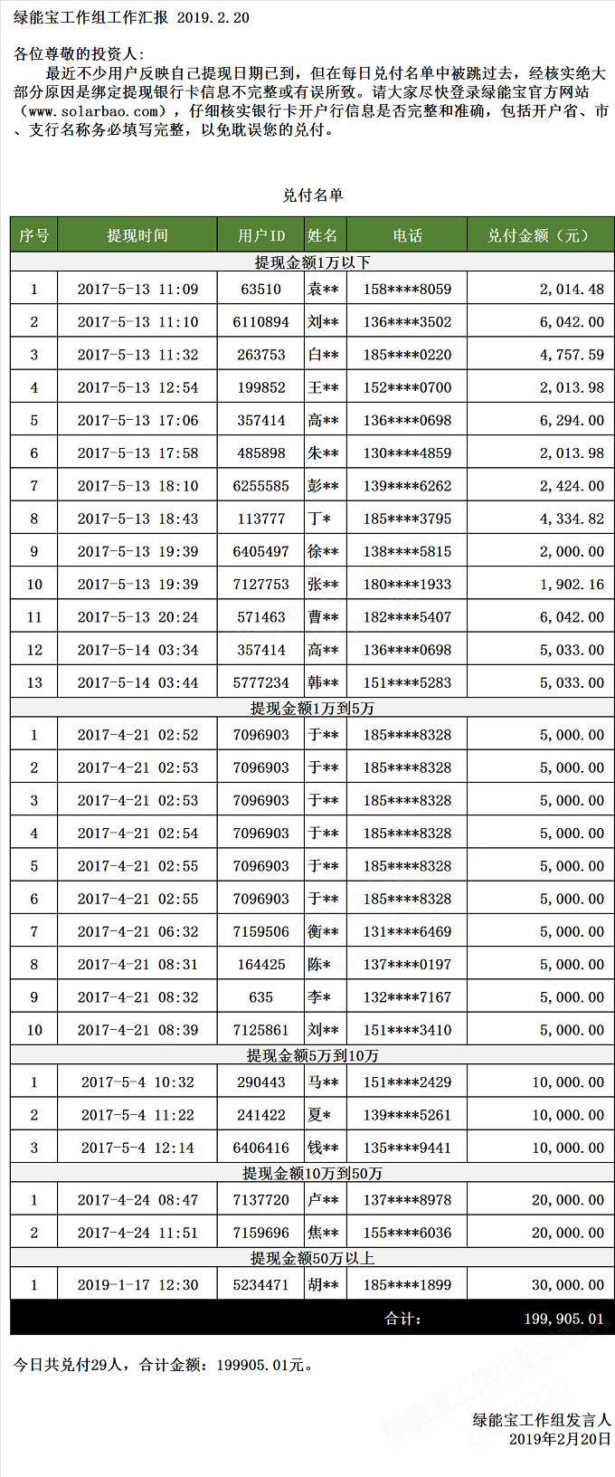 兌付名單(2019年2月20日)
